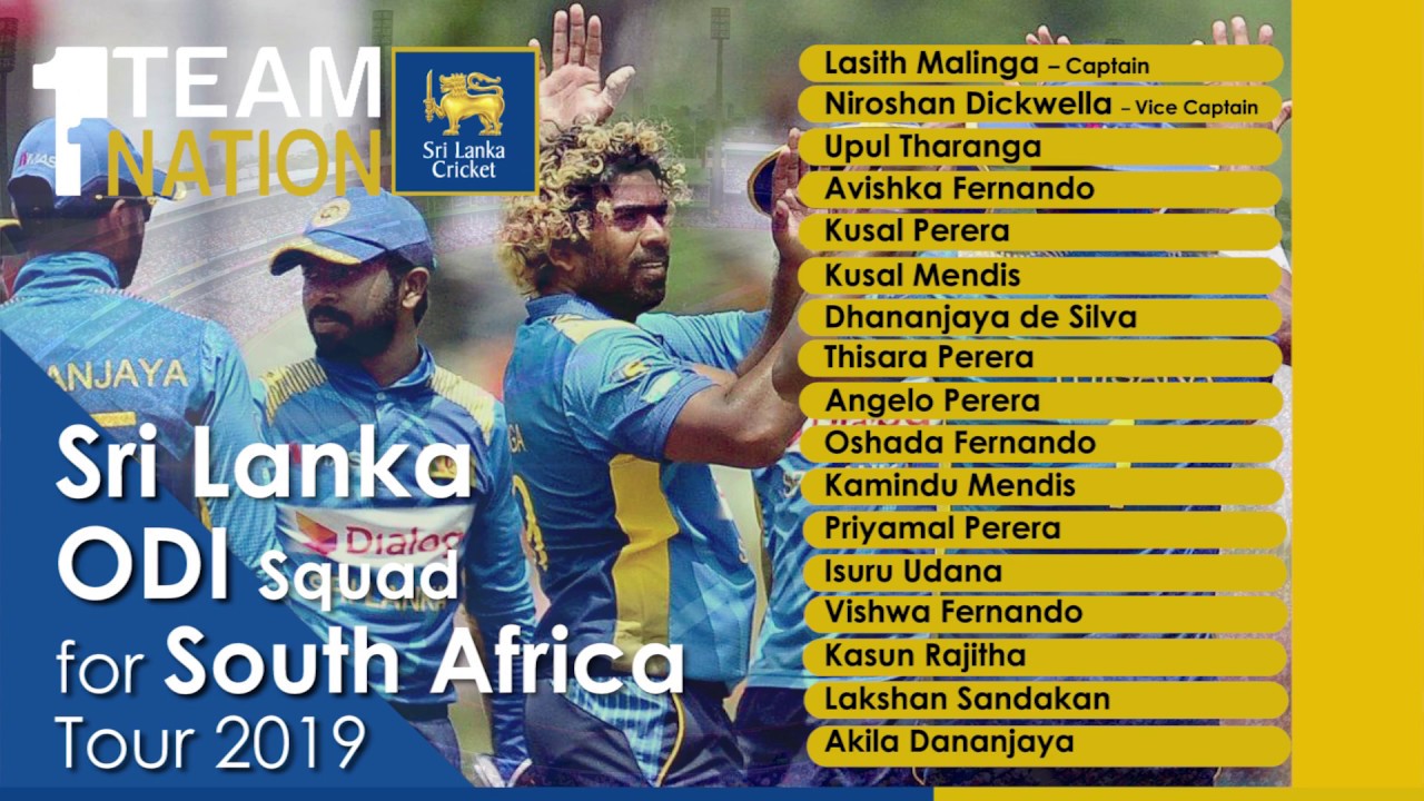 Sri Lanka Odi Squad For South Africa Series 2019 Youtube
